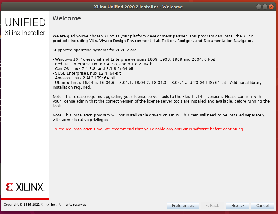 sudo ./Xilinx_Unified_2020.2_1118_1232_Lin64.bin