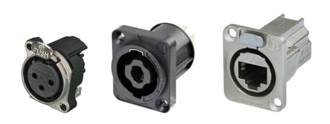 Figure 3: Neutrik’s portfolio features connector series—including XLR, powerCON, powerCON TRUE1 TOP, speakON, and etherCON—which meet all applicable standards to comply with IEC/UL 62368-1. (Source Neutrik)
