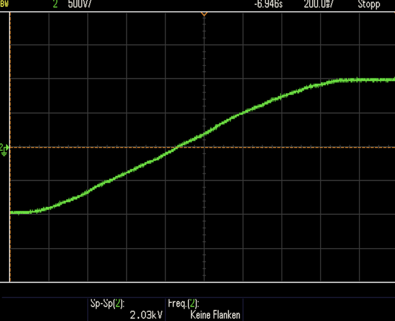The output voltage of the first module is set to -1kV. The output of a second module can be referenced to this -1kV. The isolated 2kV module is set up in cascade over the module and is controlled from 0 to 2kV.