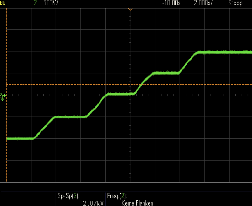 The diagrams below show how the high voltage is passed in a linear fashion through 0, and each value can be precisely adjusted, even near to zero.