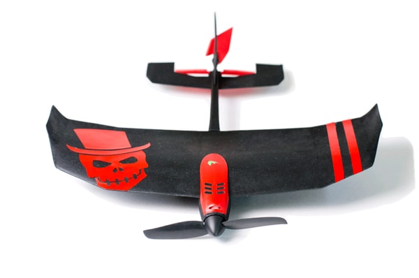 Connected by Bluetooth Smart, the tobyrich.vegas drone is shaped like a traditional airplane and controlled by a pair of suction cup joysticks that attach to the screen of your smartphone or tablet. Besides air to air dogfights, it even allows for battles between a player controlling a plane and another player shooting a ground based virtual anti‑aircraft gun from their smartphone.