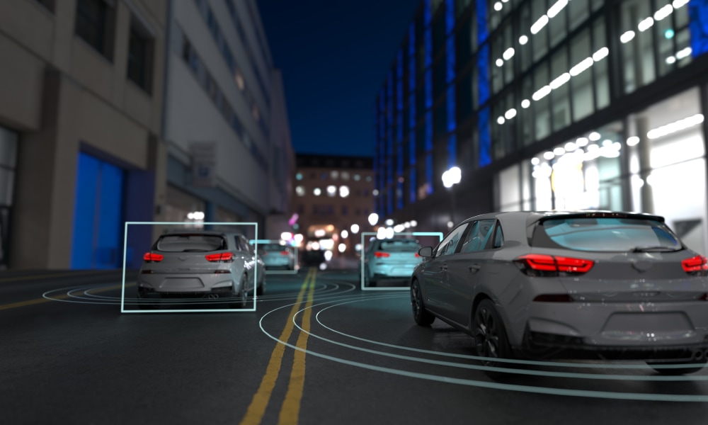 Figure 1: A rearview camera can detect vehicles within the image and indicates the vehicles' positions using rectangular boxes. (Source: Just Super/Shutterstock.com)