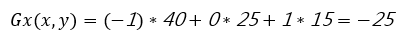 Therefore, the horizontal direction of a point with pixel value 25 is calculated as shown in Figure 5 below: