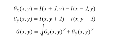 Using a reasonable definition based on a convolutional kernel approach, we can show experimentally that [-1, 0, 1] works best. The convolution kernel [-1, 0, 1] can be understood as a matrix used to calculate the gradient amplitude direction for each pixel. Therefore, we can use [-1, 0, 1] for the horizontal (x-axis positive direction, rightward) and [-1, 0, 1]T for the vertical (y-axis positive direction, upward) to perform horizontal and vertical gradient component calculations for each pixel in the image area. The squared sum and the root sign of the two gives the direction of the gradient at that point, and thus the formula used is as follows: