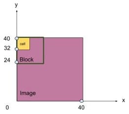 (In each image, multiple pixels form a single cell, and multiple cells make up a block.)