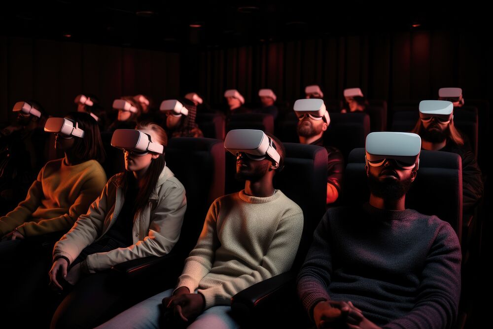 Figure 1: One solution for head tracking in home theatres using spatial audio is to have everyone wearing an immersive VR headset with accelerometers and gyros built in. (Source: Marija - stock.adobe.com: generated with AI)