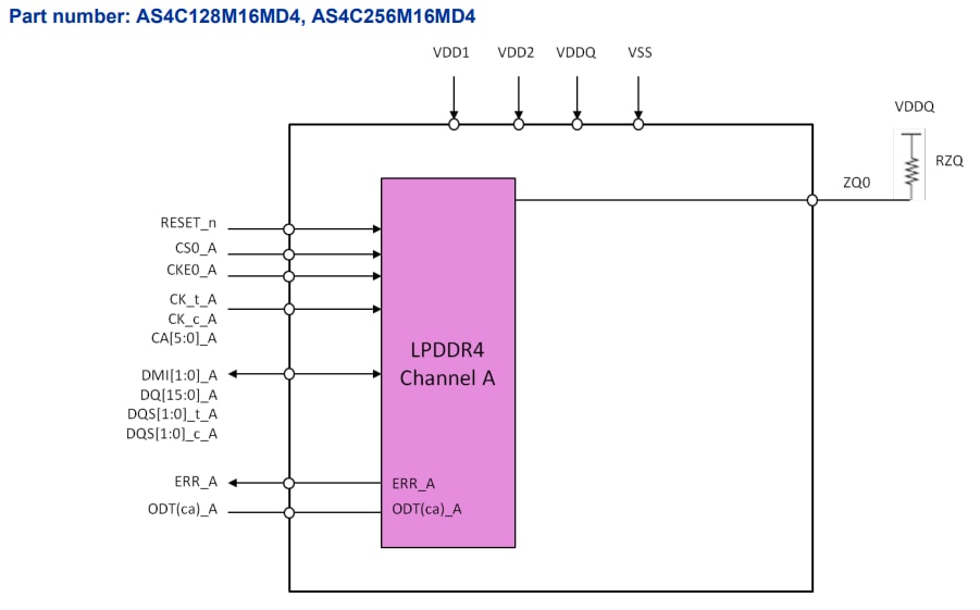 - 32x for 2-channels per device (AS4C64M32MD4, AS4C128M32MD4, AS4C256M32MD4, AS4C512M32MD4, AS4C1G32MD4)