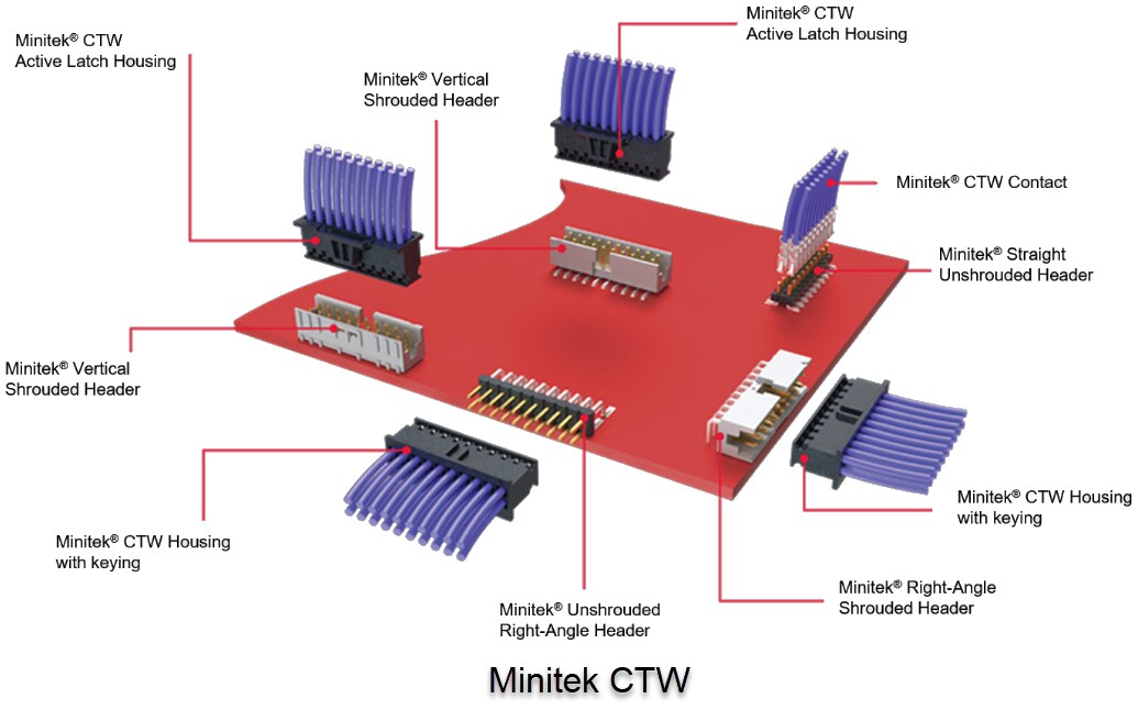 Amphenol FCI Minitek® 2.00mm Space-Saving Connectors include single and double row receptacles for Board-to-Board and Wire-to-Board applications, in 2 to 25 positions per row and in vertical and horizontal configurations. The fully modular system enables all types of connections between PCBs, wires, and flat cables. The connector's 2.00mm spacing allows up to 38% space savings when compared to traditional modular systems. With a very low coplanarity at 0.1mm, these connectors facilitate automatic placement. The Minitek® 2.00mm Space-Saving Connectors modular system ensures an interchangeable solution for flexible design.