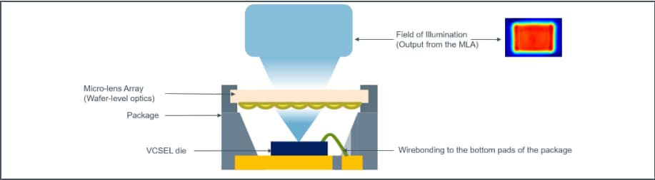 ams OSRAM EGA2000 Industrial High Power Flood Illuminators are composed of a VCSEL die and a micro-lens array (MLA). These are embedded in a package assembled with ams' state-of-the-art component manufacturing processes. The MLA enables an optimized field of illumination for different options of field of view of cameras depending on the applications: narrow, wide, and ultra-wide.Features