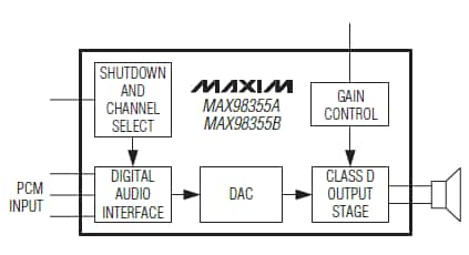 efficiency. Both the MAX98355A and MAX98355B ICs from Maxim are