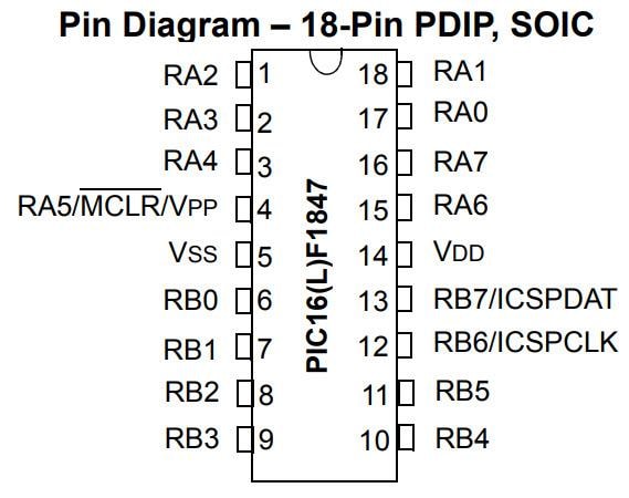 - 1.8V to 5.5V operating voltage for PIC16F1847
