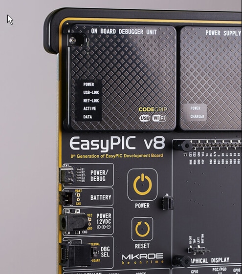 Mikroe MIKROE-3614 EasyPIC v8 Development Board features the PIC18F47K42 MCU, 8MHz crystal, and CODEGRIP Suite, a powerful software suite. This software suite is used to intelligently manage programming tasks and other options and settings on the development board. The Mikroe MIKROE-3614 supports a wide range of 8-bit PIC MCUs and offers eight different DIP sockets from DIP8 to DIP40. This development board features two display connectors, a 16-pin header for connecting LCD, and a 20-pin header that supports monochromatic GLCD and EasyTFT board. The MIKROE-3614 offers five improved mikroBUS™ sockets with placement for 650+ different click boards. This development board is ideal for rapid prototyping, firmware development, and proof of concept.MIKROE-3614 EASYPIC V8