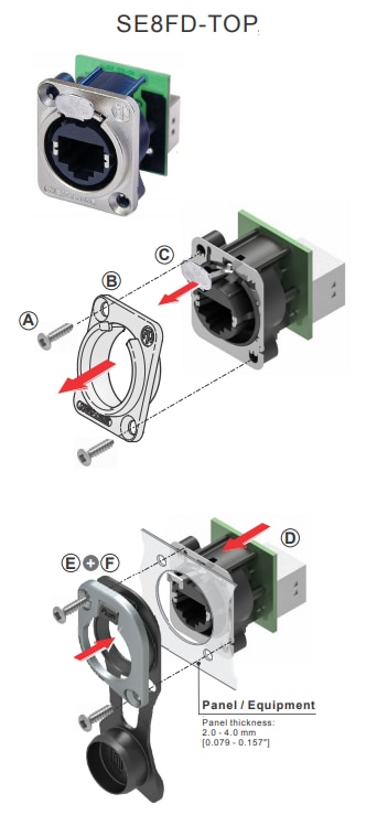NEUTRIK etherCON® True Outdoor Protection (TOP) Connectors are heavy-duty sealed RJ45 connectors designed for harsh environments. These connectors include rugged cable connector carriers that accept most RJ45 plugs. The etherCON connectors also include the D-sized receptacles for PCB mount and Insulation-Displacement Contact (IDC) termination or to operate as feedback adapters. These connectors are made of high-impact UV-resistant materials as per UL certifications. NEUTRIK etherCON connectors also incorporate outdoor protection, according to IP65 and UL50E.Features