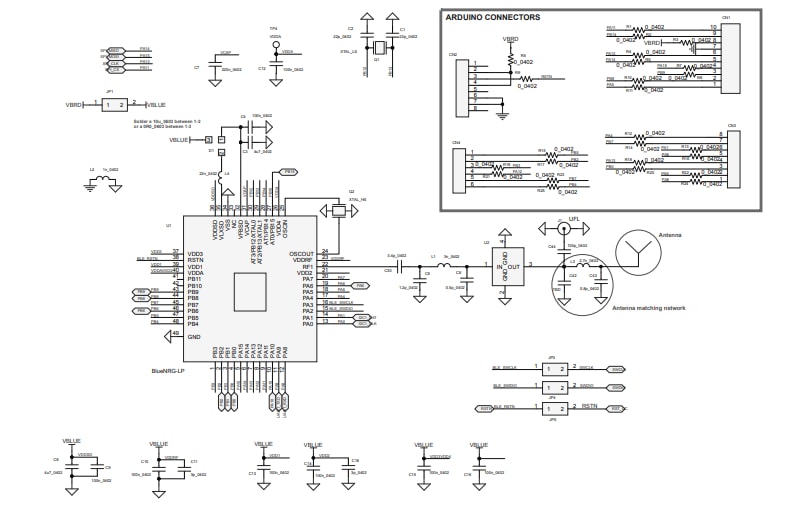 - Evaluates BlueNRG-LP SoC