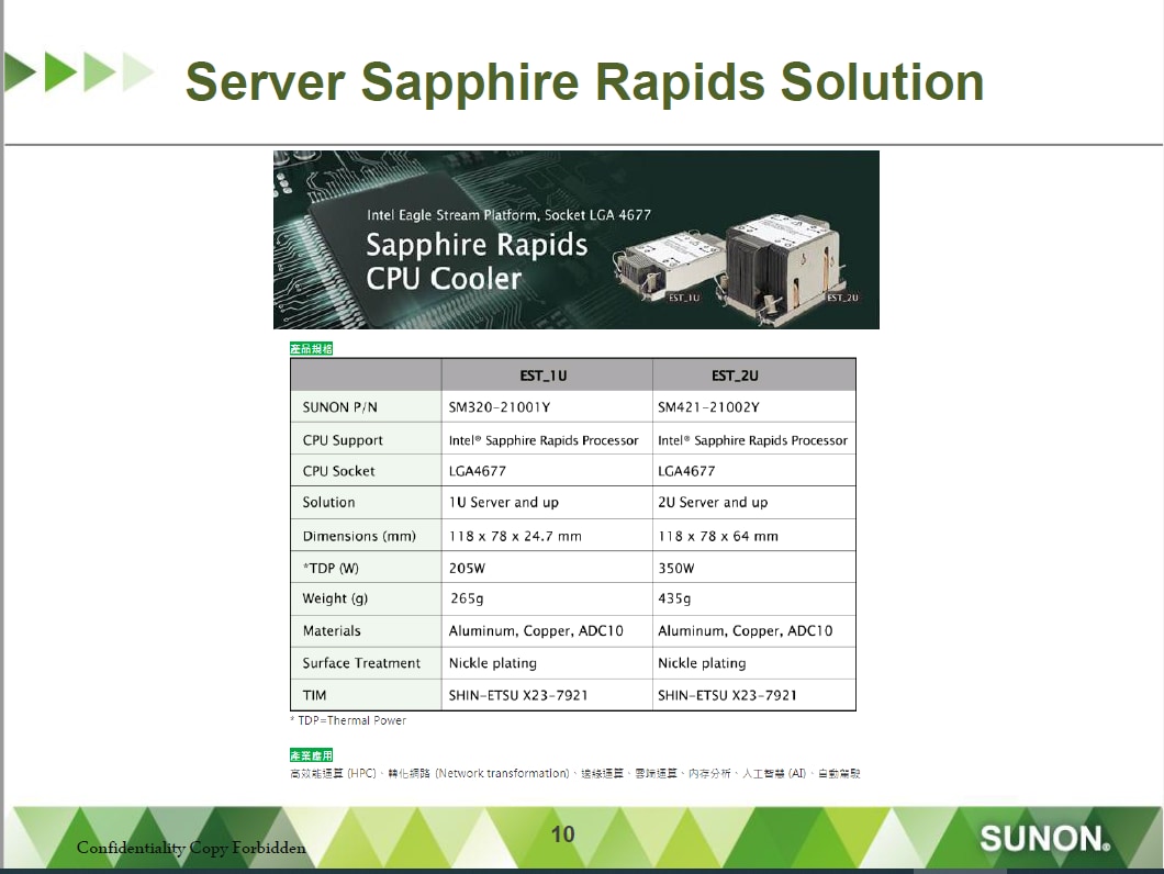 Sunon Intel® Sapphire Rapids CPU Coolers