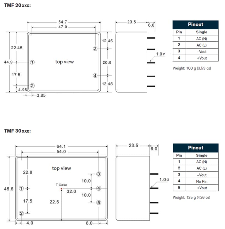 | TMF 20112 | 20 W | 12 VDC | 1.667 A |